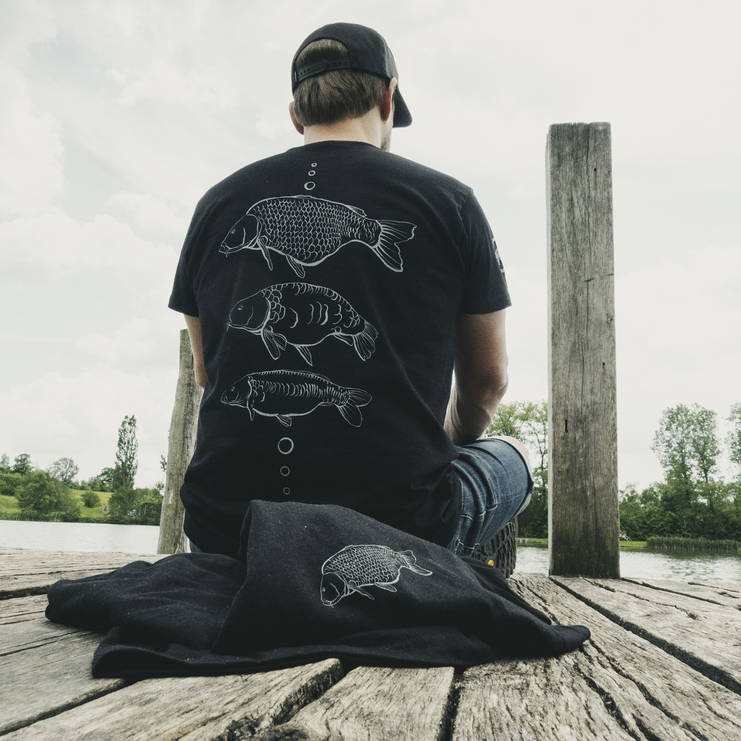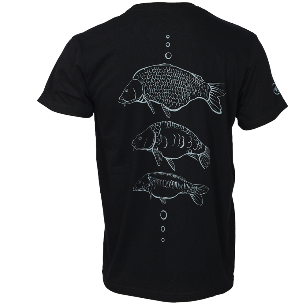 Kvalitní tričko v černé barvě s designem třech kaprů na zádech a decentním kapříkem v přední části.
