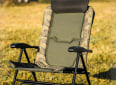 Újszerű kialakítású szék, amelynek a fejtámlája is állítható.