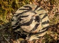 Diszkrét kamuflázs minta és az oldalán bőr logó. Minőségi használt szövet pamut és poliészter kombinációjából. Állítható zsinór a nyak alatt.